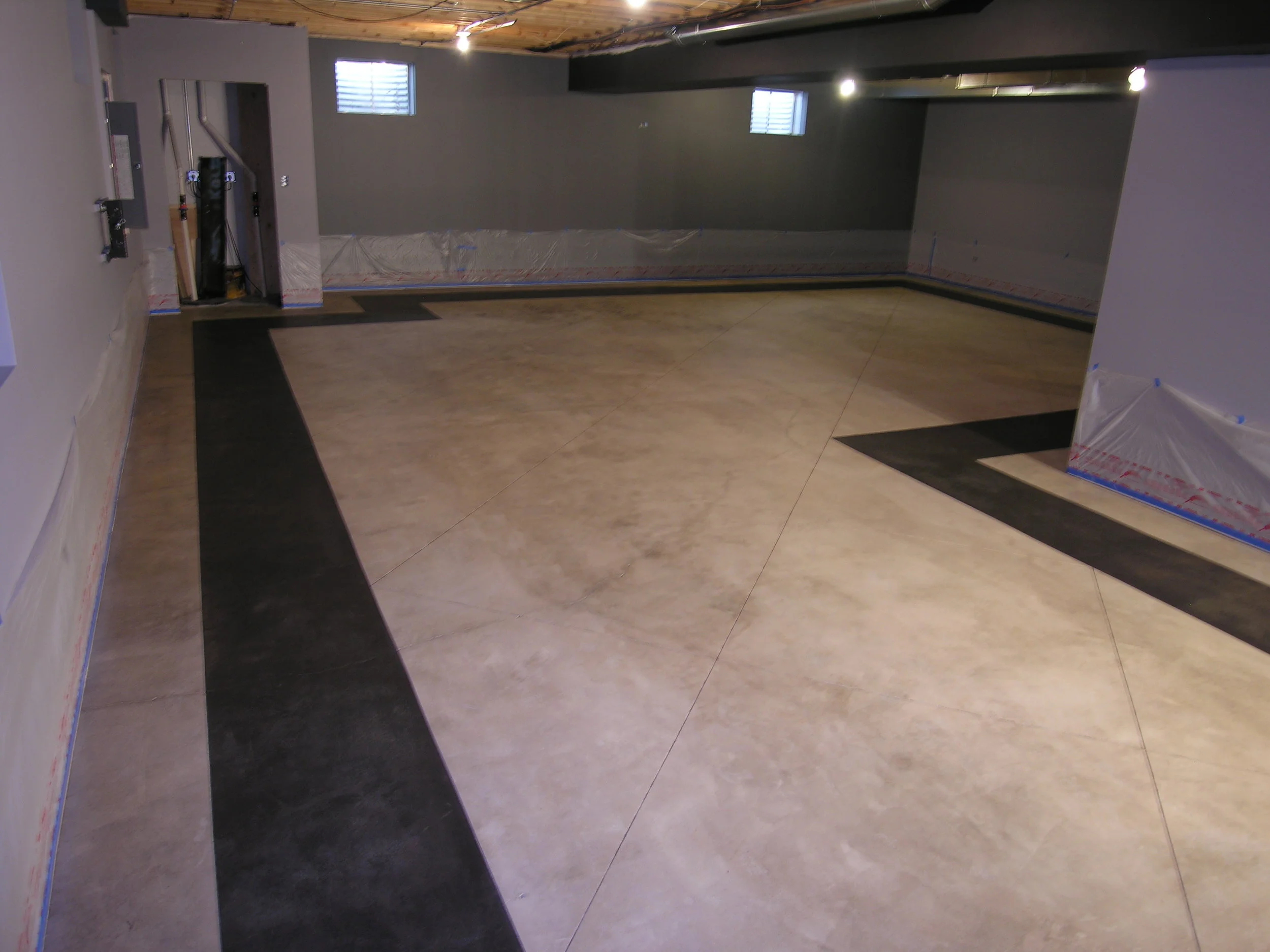 You can install rubber tiles and rubber flooring rolls directly on top of a concrete basement flooring surface. It will deaden sound when. The versatility of finished concrete flooring works well to adapt to a variety of home styles, and works seamlessly with this. Keep in mind, the average cost of laminate flooring is $1/sf to $5/sf. I have a 7'6 ceiling height with a floor that deviated by a max of about 2 inches in some spots.